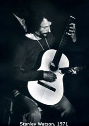 *Stanley made only a few recordings. One of them, a song called “Pages From A Journal On America”, can be found on an early Chuck Mangione album called Together (Mercury Records). “Songs From The Valley Of The Nightingale” can be found on Chuck’s first LP Friends And Love (also on Mercury). The Friends And Love concert is also available on DVD from Dynamic Recording Studios. Two other pieces, “Lullaby To An Unborn Child” and “La Danza Los Ninos”, can be found on Bat McGrath and Don Potter’s Introducing LP (on Epic Records). You will have to do some searching as these records are out of print. Noted fingerstyle guitarist Davey Graham (author of “Angie”) recorded Stanley’s “La Danza Los Ninos”. This can be found on an album of Graham’s called The Art Of Fingerstyle Guitar. “La Danza Los Ninos” is part of Stanley’s larger work “The Churianna Suite” which is on Kinloch Nelson Plays Stanley Watson.